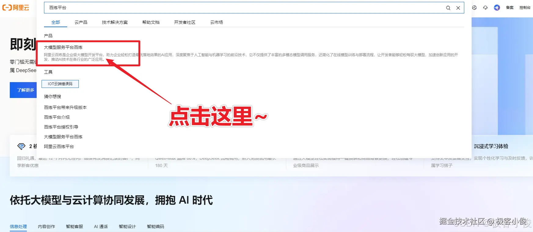 然后在阿里云官网,搜索关键字百炼平台并进入!