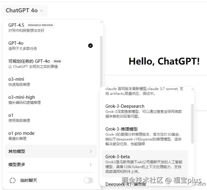 - Premium +:普通模型 100次 / 2小时,推理和深度搜索 30次 / 2小时。
