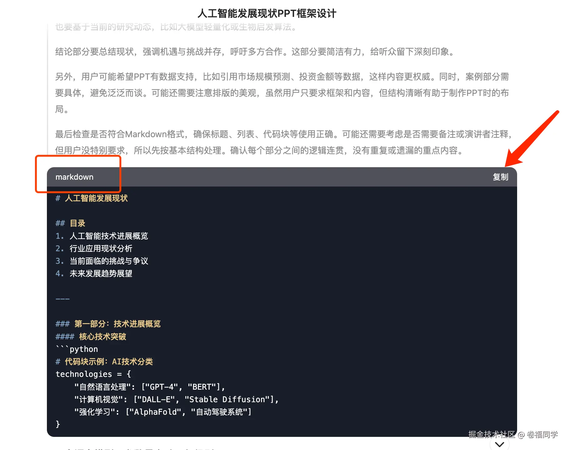 2.我们把Deepseek输出的markdown格式文本拷贝出来