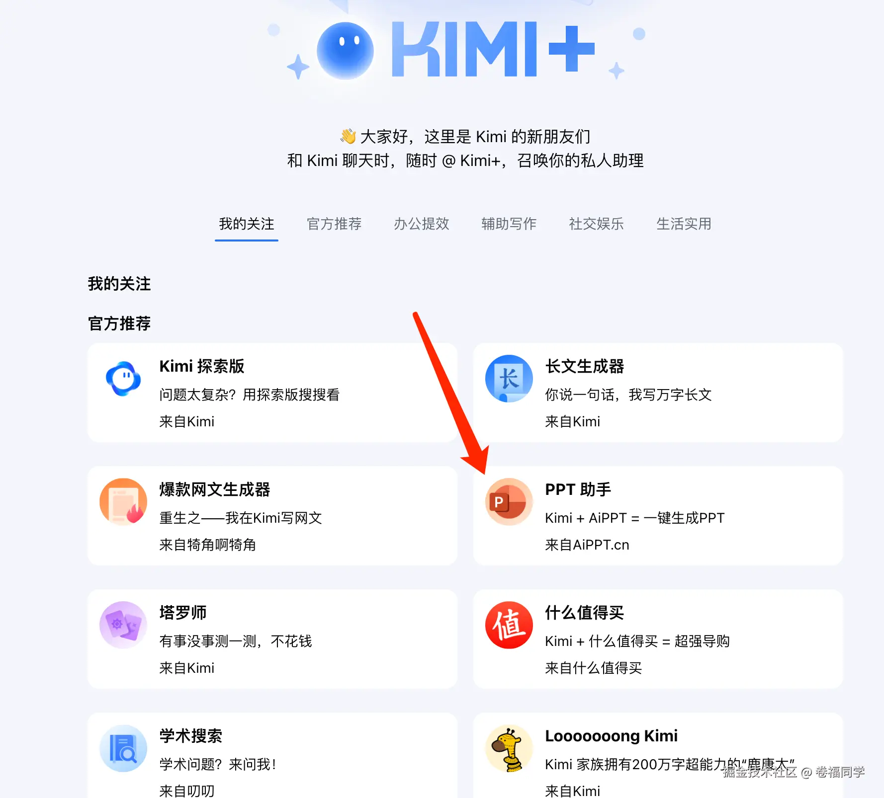 3.接着打开Kimi+,然后找到PPT助手