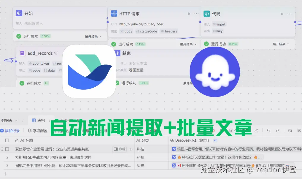 想象一下, 每天早上,热腾腾的最新科技新闻自动汇总到你的飞书多维表格, 标题、分类、链接,一目了然! 更惊喜的是,还能 一键文案改写, 热点素材+爆款文案,简直不要太爽! 这,就是 Coze + 聚合数据 API + 飞书多维表格 联手打造的 自动化神级工作流!