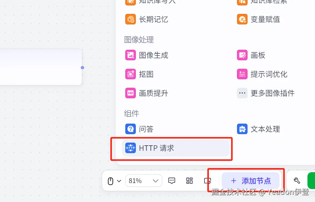 在工作流中拖入 “HTTP请求” 节点, 这可是连接聚合数据API的关键!