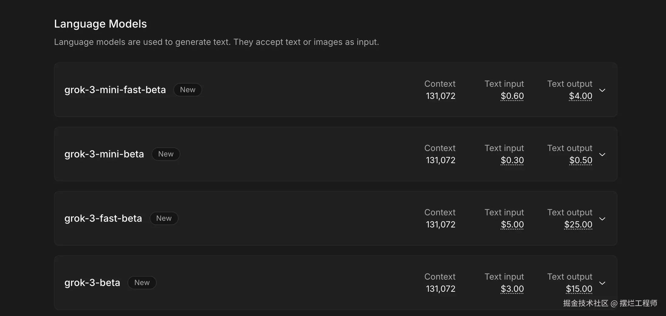 grok-3-beta和grok-3-mini-beta 现在可用,支持文本模式,上下文窗口为131072 tokens