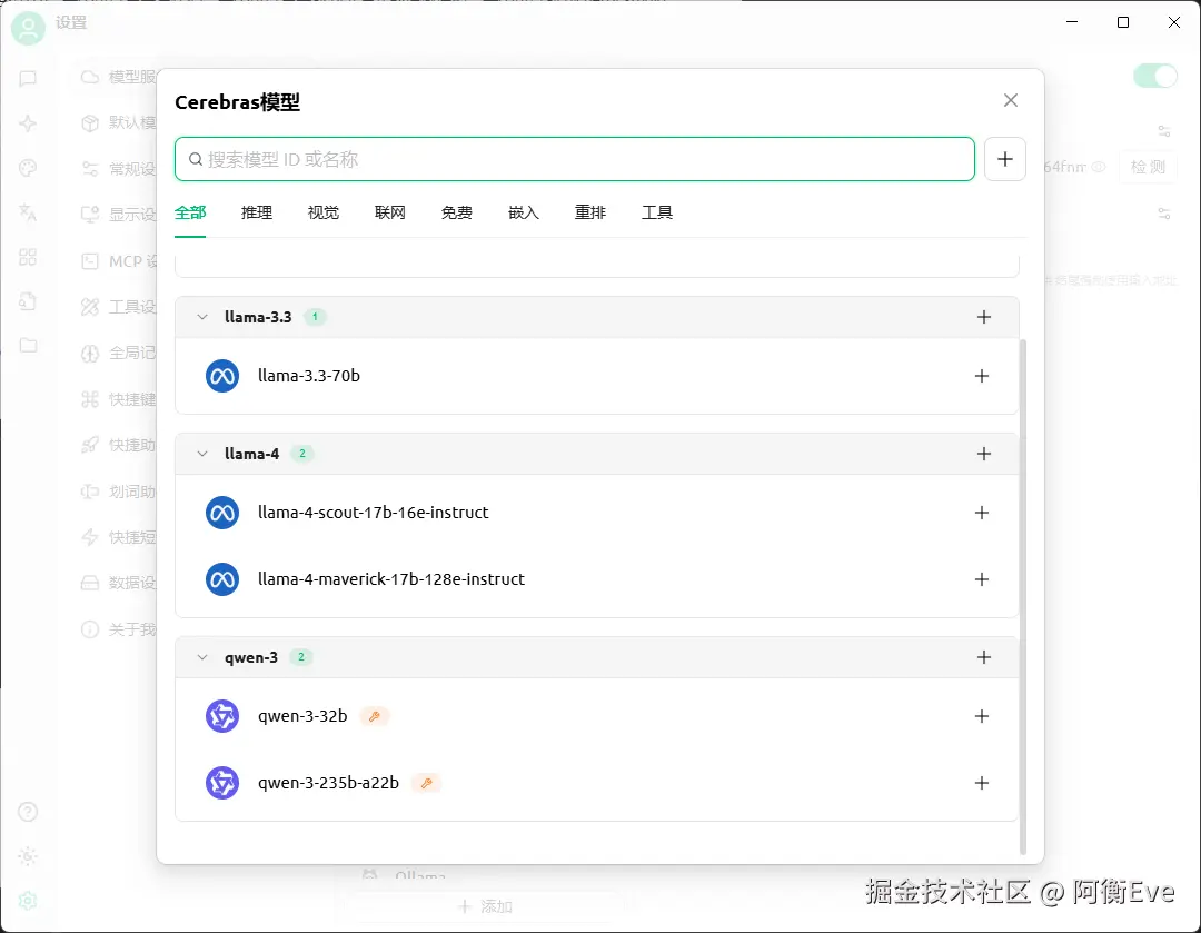 API Provider 选择 Cerebras,配置好你的 API Key,选择合适的大模型,写代码应该就是使用大碗的 235b