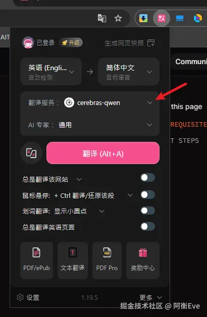 既然今天可以白嫖 qwen3 的额度,那就可以尝试给沉浸式翻译配置大模型了,这个额度每天足够用了