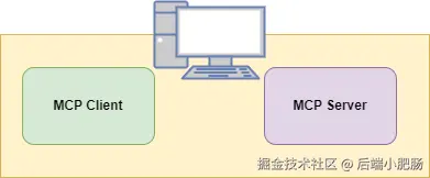 stdio: 这是一种本地的进程间通信模型。客户端(MCP client)会直接在同一台机器内启动子进程(MCP server)。二者之间的通信不通过网络,而是通过操作系统的标准流:客户端向子进程的 stdin(标准输入)写入数据,并从其 stdout(标准输出)读取响应。这种方式要求二者必须部署在一起,配置时体现为 command 和 args